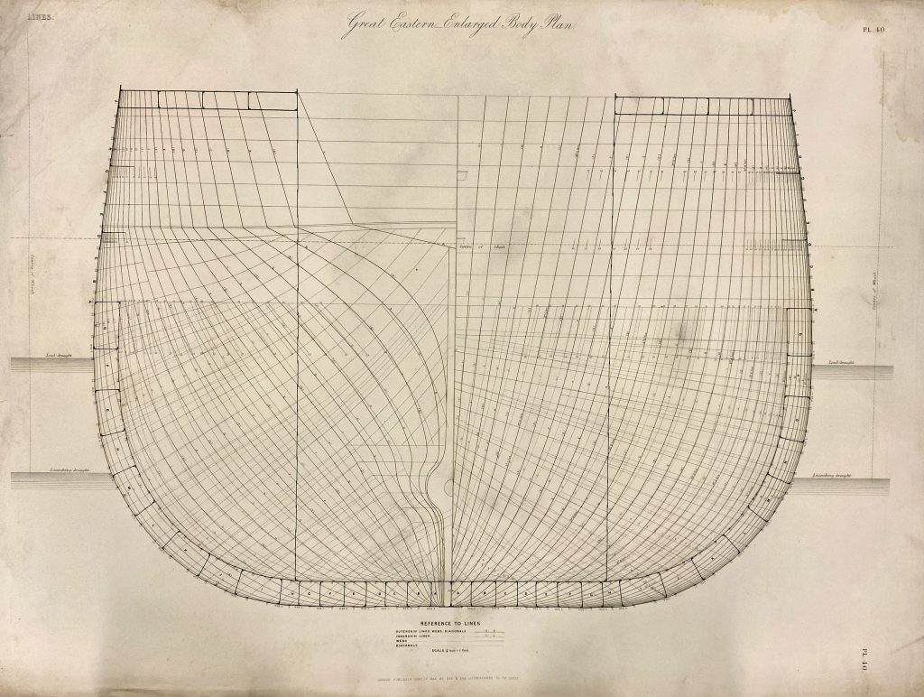 ‘Enlarged Body Plan’ of Isambard Kingdom Brunel’s SS Great Eastern, built 1854-58.